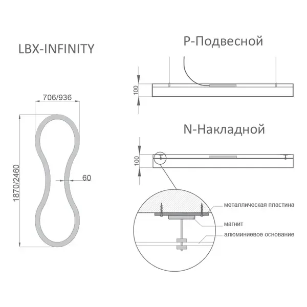 Светильник RVE-LBX-INFINITY-1870 символ "8" 1870x706x100мм