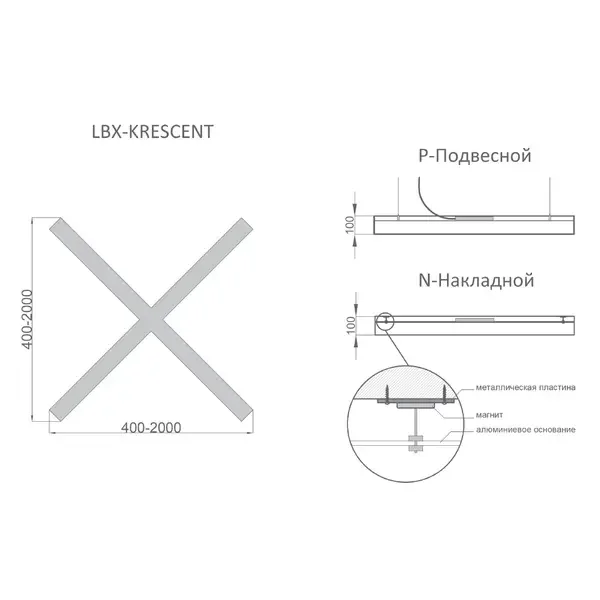 Светильник RVE-LBX-KRESCENT-400 крест 400x400x100мм
