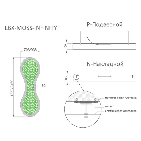 - RVE-LBX-MOSS-INFINITY-1870 - 113Вт (10 283Лм) 1870x706x100мм S60мм - 74 957 руб.