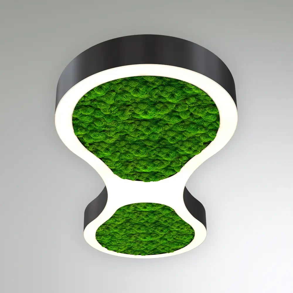 Дизайнерский светильник в форме Восьмерки со мхом. Используется стабилизированный мох (безопасный, не вызывает аллергию, не притягивает пыль).