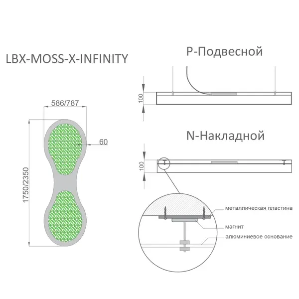 - RVE-LBX-MOSS-X-INFINITY-2350 - 190Вт (17 290Лм) 2350x787x100мм S60мм - 116 921 руб.