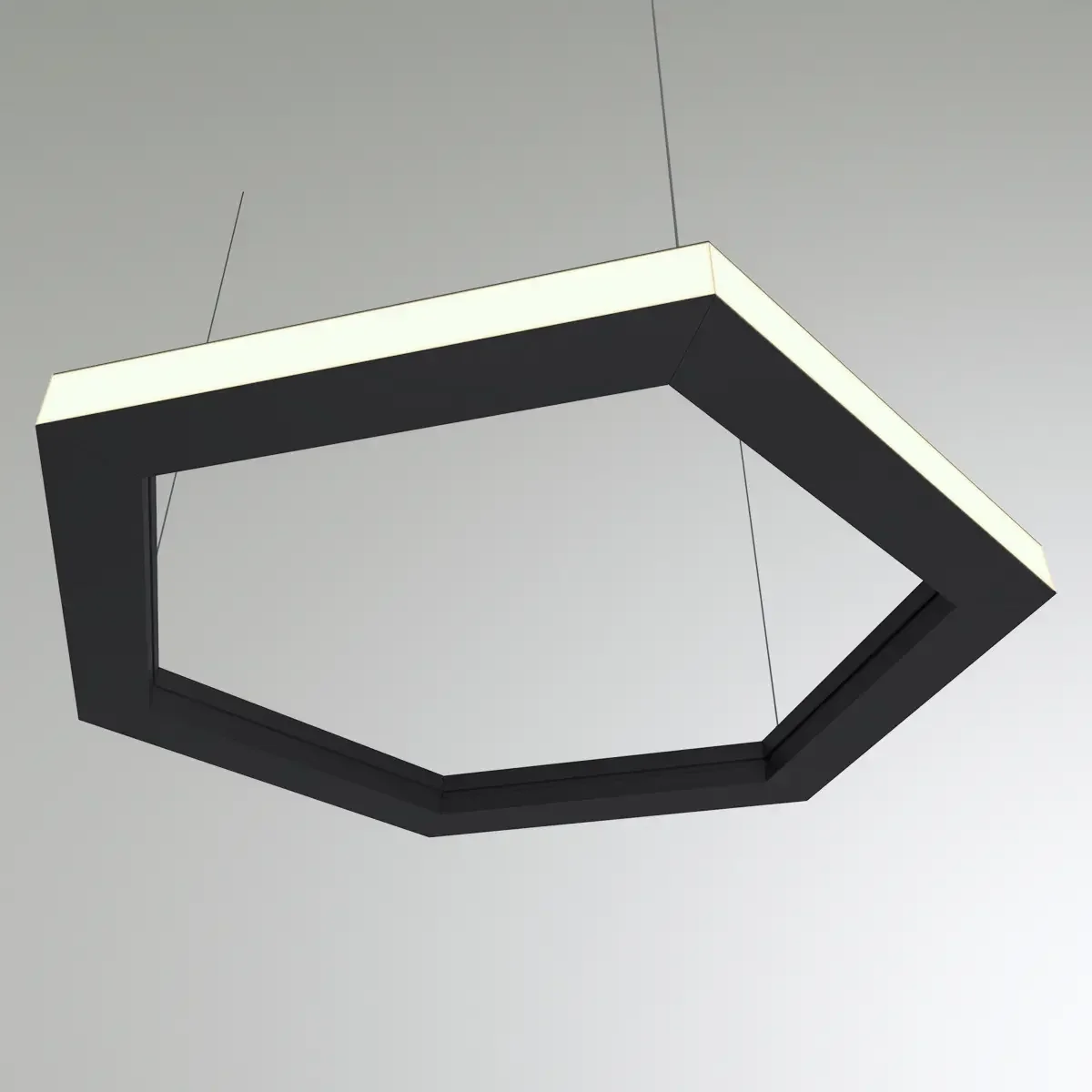Профильные подвесные светодиодные светильники в форме Шестиугольника (свечение наружу) выполняют двойную функцию: освещают помещение, а также служат оригинальным, декоративным элементом в современном стиле.