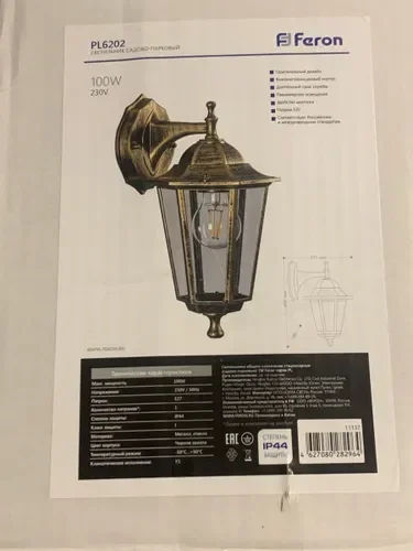Светильник садово-парковый, 100W 230V E27 черное золото, 6202/PL6202 (на стену вниз)