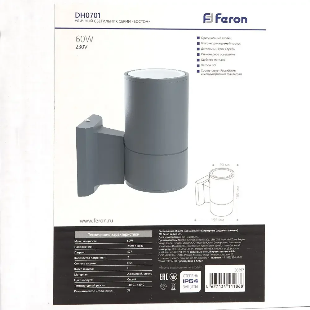 Светильник садово-парковый, 230V E27, DH0701, серый (на стену вверх)