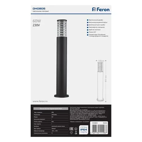 Светильник садово-парковый, 230V E27, DH0805, черный