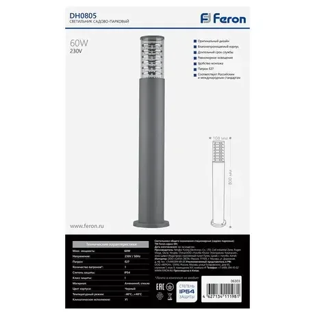 Светильник садово-парковый, 230V E27, DH0805, серый