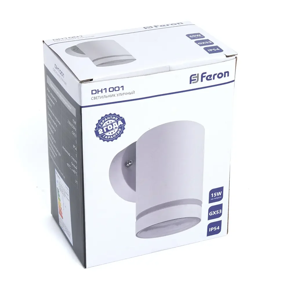 Светильник садово-парковый Feron DH1001, на стену, GX53, 230V, белый
