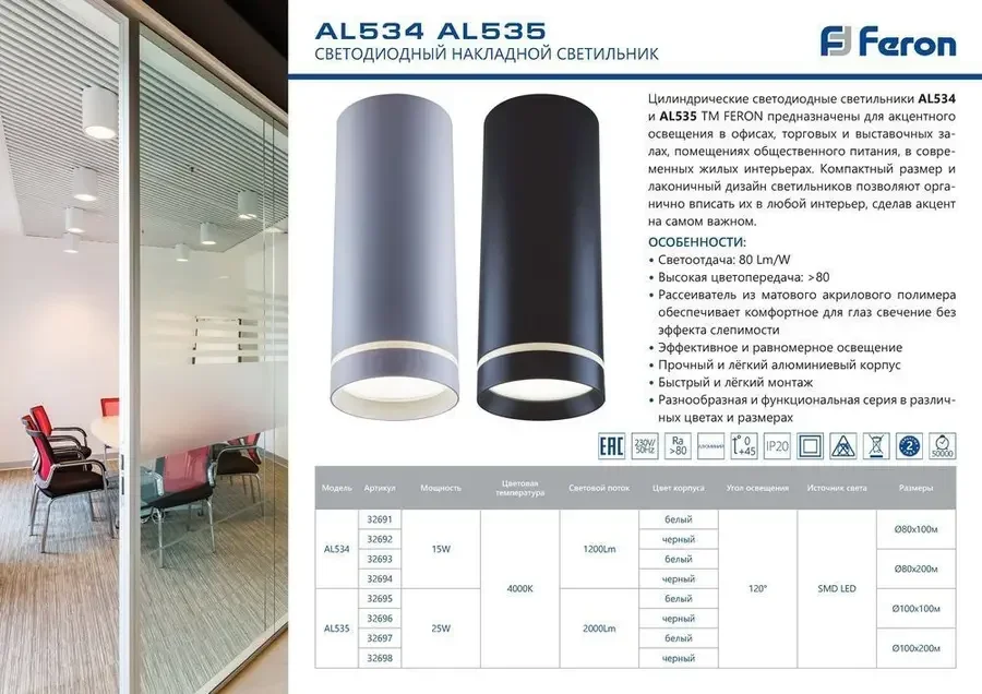 Светильник светодиодный 15W, 1200Lm, 120 градусов, черный, D80*H100 AL534 LUNA