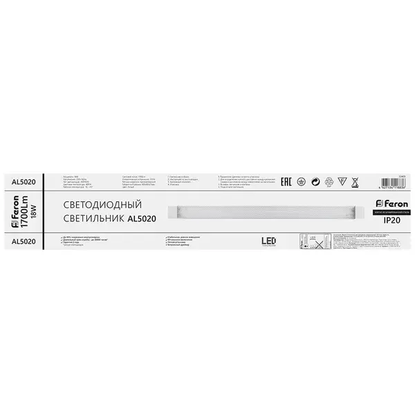 Светильник светодиодный линейный Feron AL5020 IP20 18W 4000K 600*23*60мм, 32409