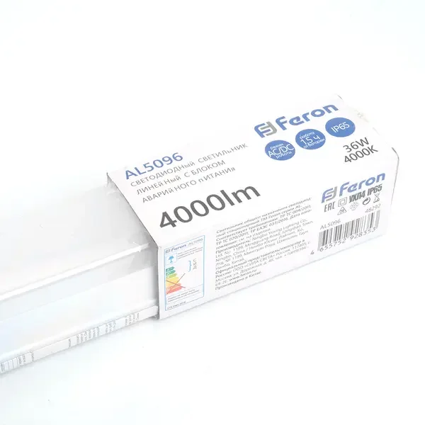 Светильник светодиодный линейный Feron с БАП IP65 36W 4000K 1200*60*55мм AL5096