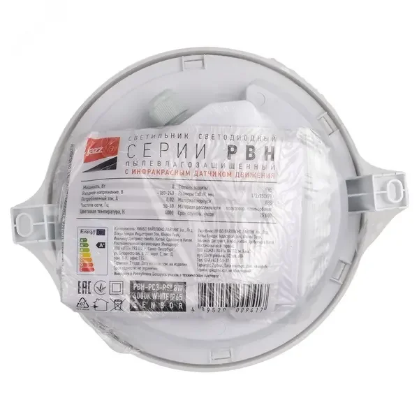 Светильник светодиодный пылевлагозащищенный с инфракрасным датчиком движения PBH-PC3-RSI Sensor 8w, 5009417