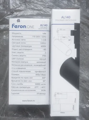 Светильник трековый светодиодный на шинопровод 14W, 1260 Lm, 4000К, 35 градусов, черный, AL140 со встроенным драйвером