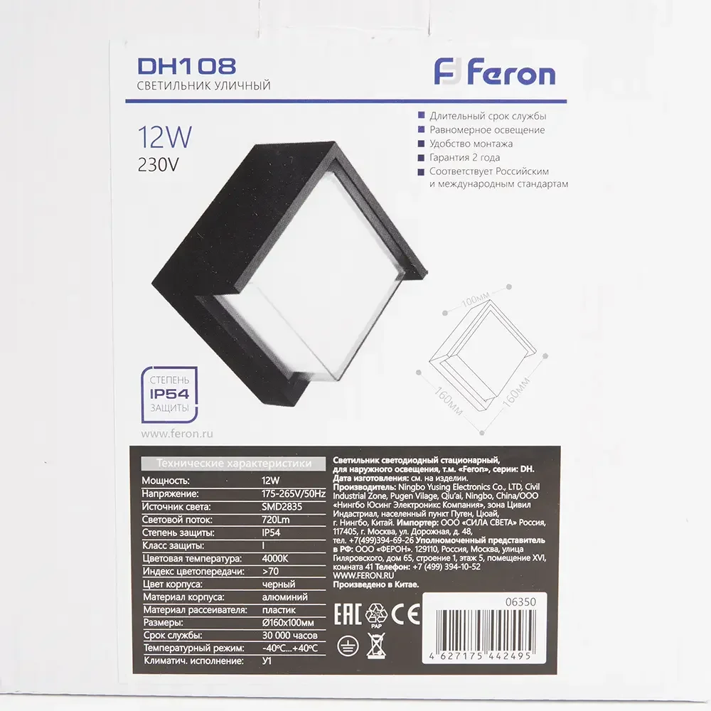 Светильник уличный светодиодный, 12W, 720Lm, 4000K, черный DH108