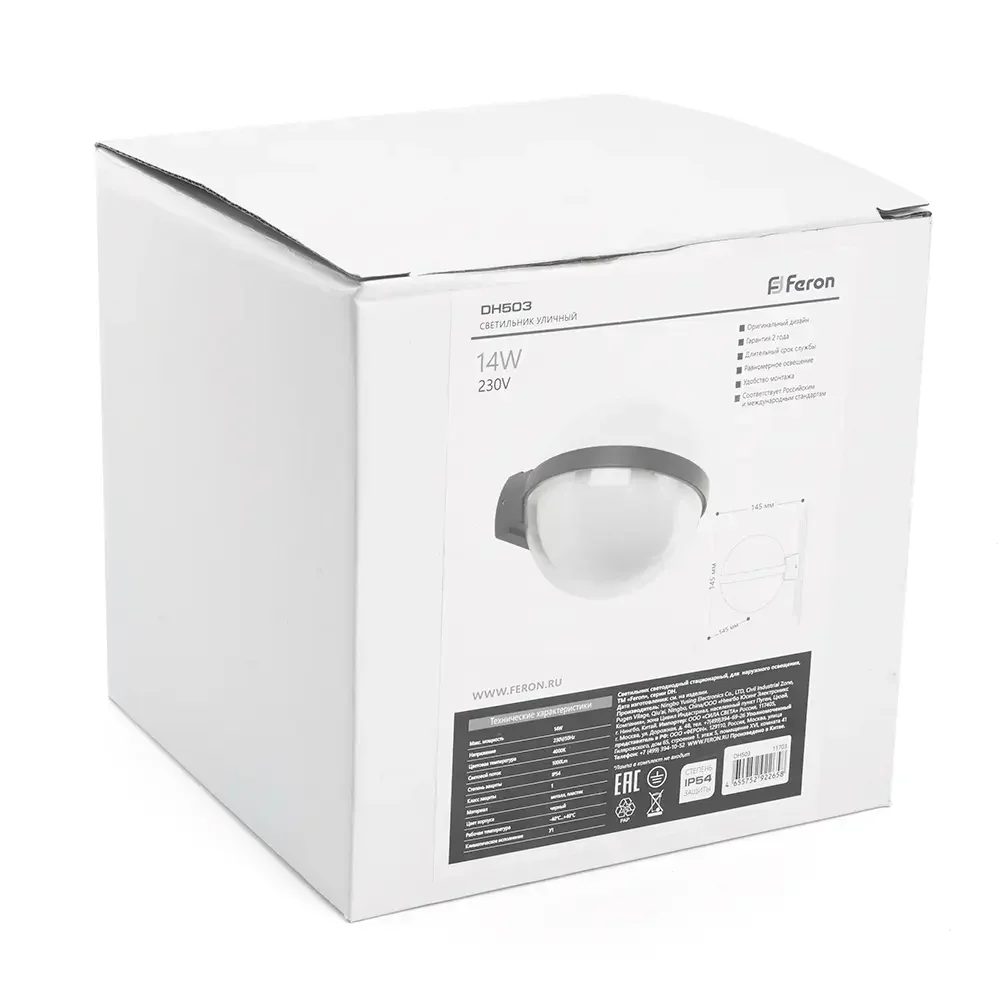 Светильник уличный светодиодный, 14W, 1000Lm, 4000K, черный DH503 (на стену)