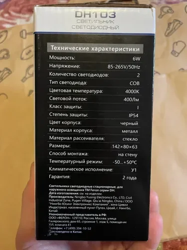 Светильник уличный светодиодный, 2*3W, 400Lm, 4000K, черный DH103