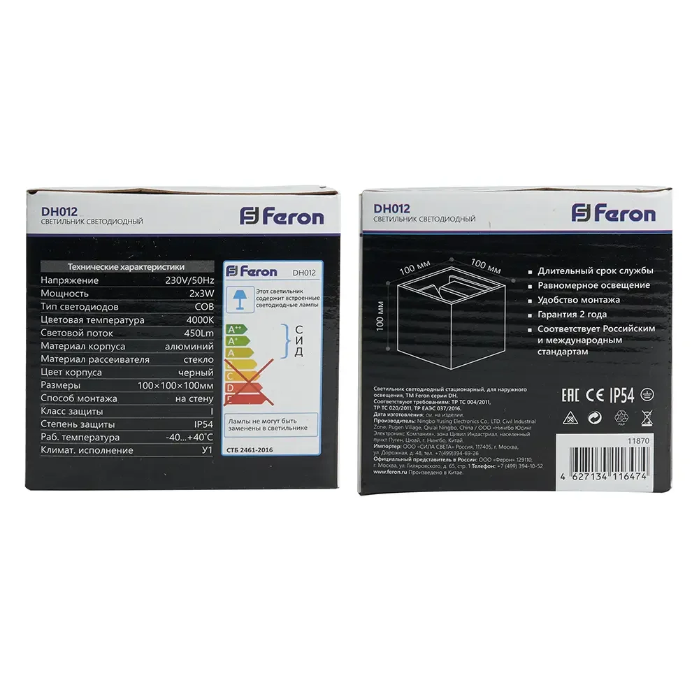 Светильник уличный светодиодный, 2*3W, 450Lm, 4000K, DH012, черный