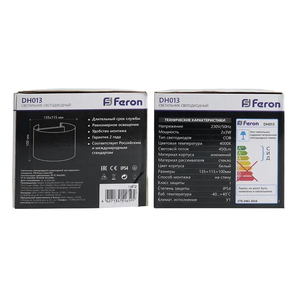 Светильник уличный светодиодный, 2*3W, 450Lm, 4000K, DH013, белый