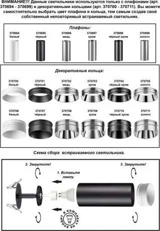 Светильник встраиваемый без плафона плафоны арт. 370694-370711 Novotech UNITE 370681