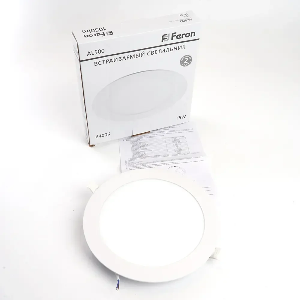 Светильник встраиваемый светодиодный 15W, 6400K, 1050Lm, белый, AL500 с драйвером в комплекте