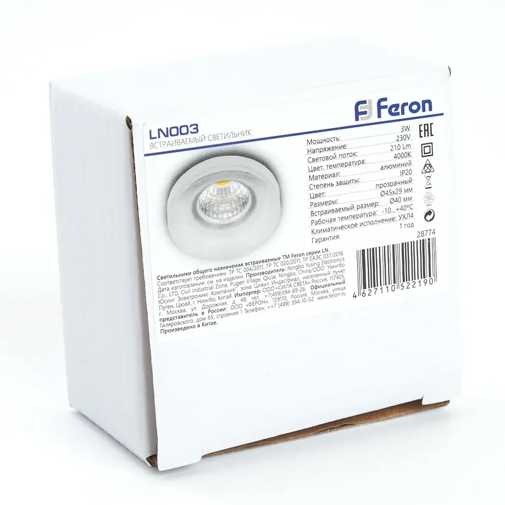 Светильник встраиваемый светодиодный 3W, 210 Lm, 4000К, прозрачный, LN003 с драйвером в комплекте