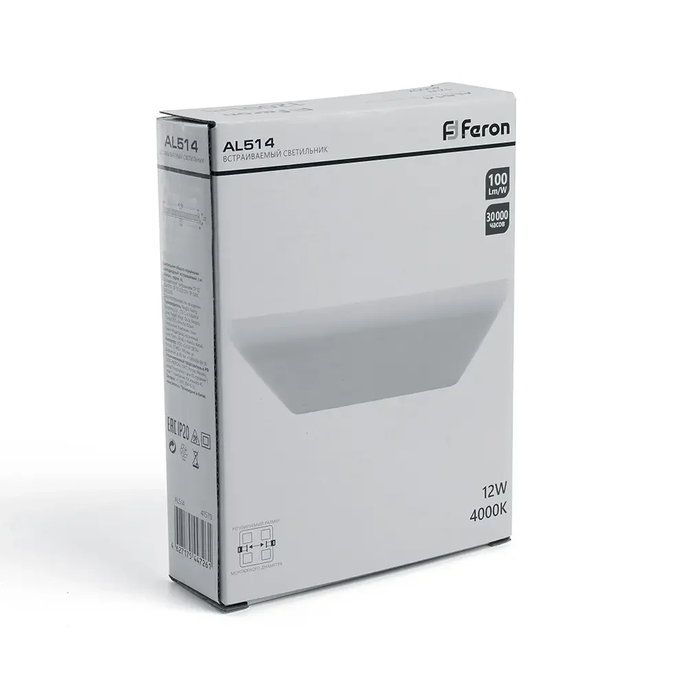 Светильник встраиваемый светодиодный с регулируемым монтажным диаметром (до 140мм) 18W, 4000K,1800Lm, белый, AL514 с драйвером в комплекте серия FlexyRim