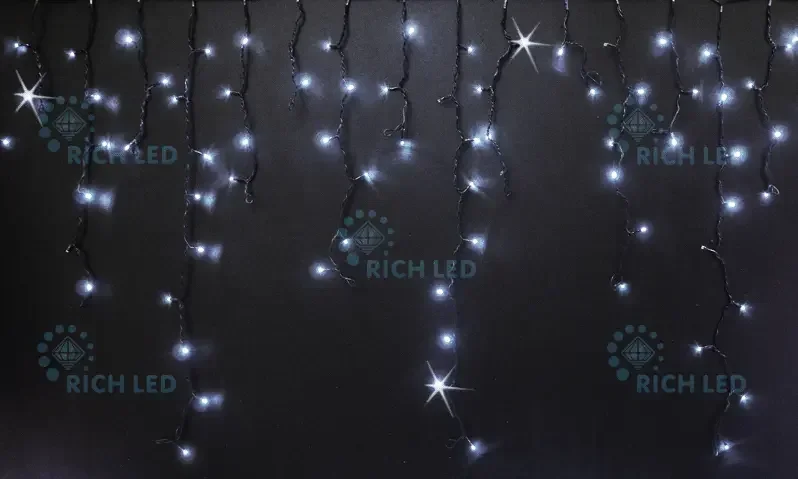 Светодиодная бахрома 144 LED, 6 Ватт, IP54, для улицы и помещения, провод черный, Свечение: мерцание, RL-i3*0.9F-B/W