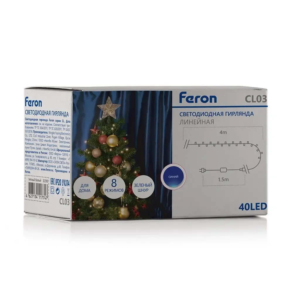 Светодиодная гирлянда Feron CL03 линейная 4м +1.5м 230V синий
