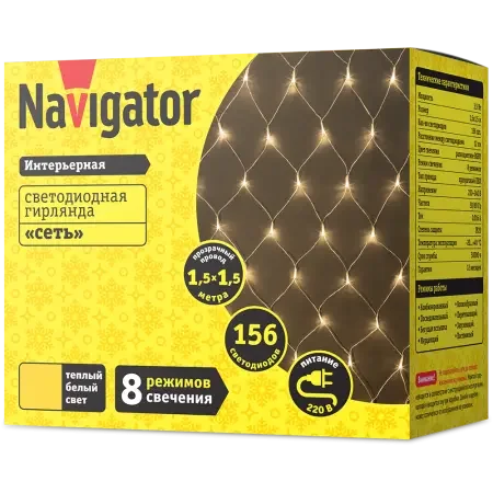 Светодиодная гирлянда NGF-N01-156WW-12-1.5x1.5m-230-TR-IP20
