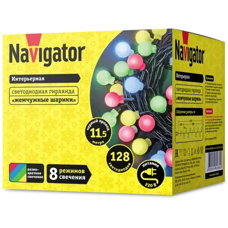 Светодиодная гирлянда «шарики» NGF-B01-128RGBWW-8-11.5m-230-C8-BL-IP20
