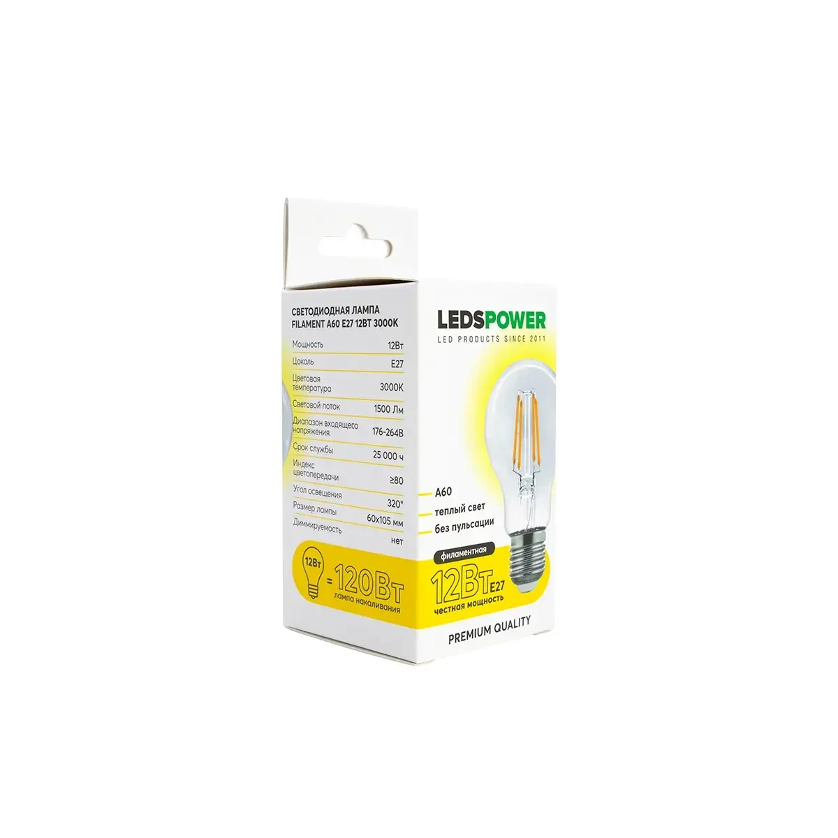 Светодиодная лампа LEDS POWER Filament A60 E27 12Вт 3000К 007137