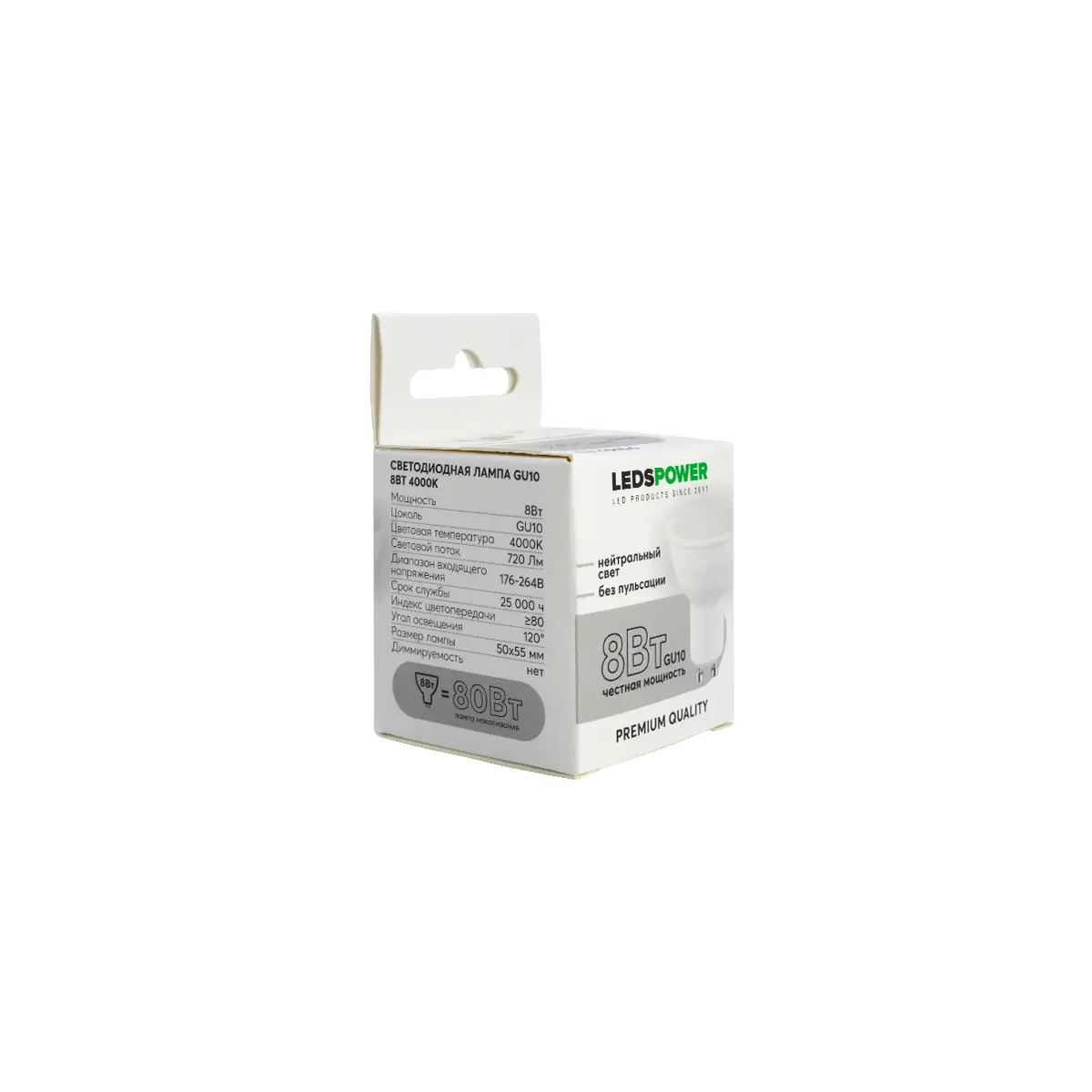 Светодиодная лампа LEDS POWER GU10 8Вт 4000К 006826