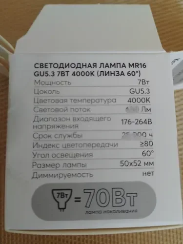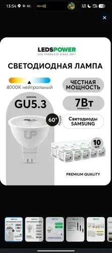 Светодиодная лампа LEDS POWER MR16 GU5.3 7Вт 4000К (линза 60°) 006918