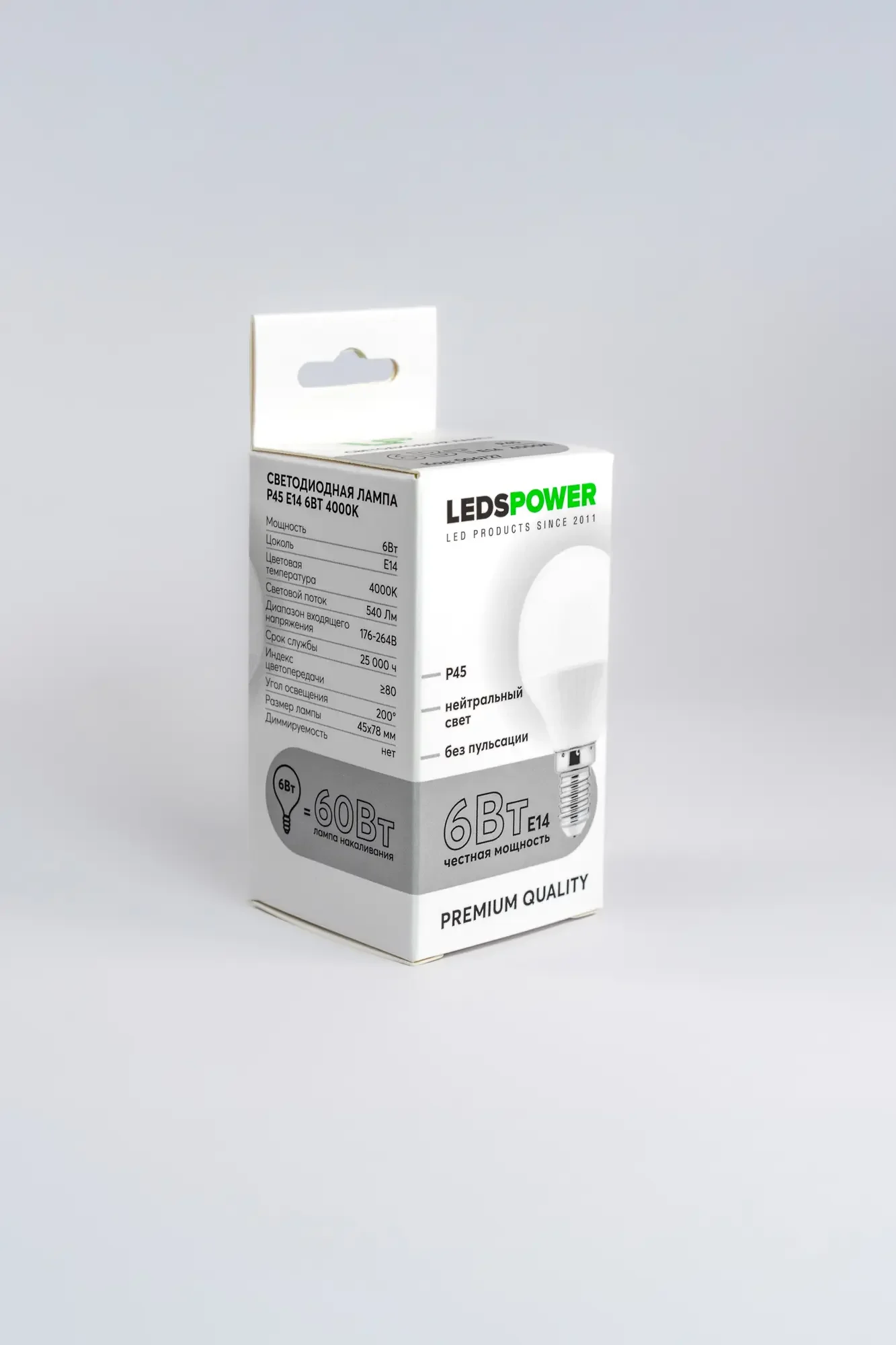 Светодиодная лампа LEDS POWER P45 E14 6Вт 4000К 006727