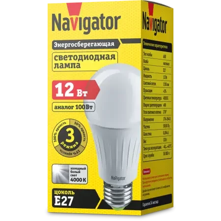 Светодиодная лампа NLL-A60-12-230-4K-E27-3STEPDIMM