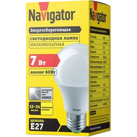 Светодиодная лампа NLL-A60-7-12/24-4K-E27