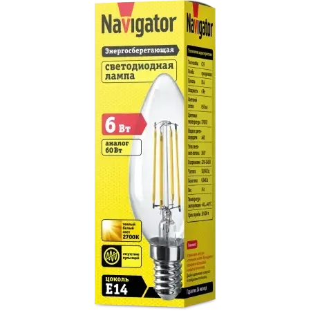 Светодиодная лампа NLL-F-C35-6-230-2.7K-E14