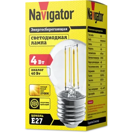 Светодиодная лампа NLL-F-G45-4-230-2.7K-E27