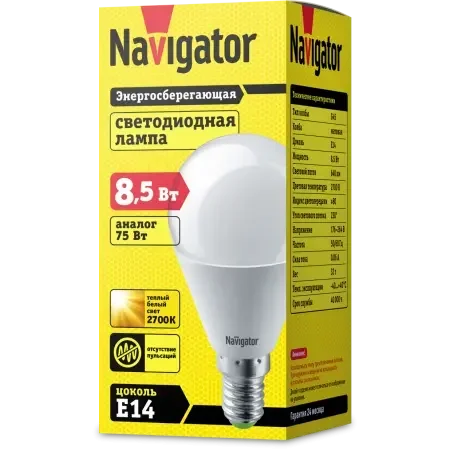 Светодиодная лампа NLL-G45-8.5-230-2.7K-E14