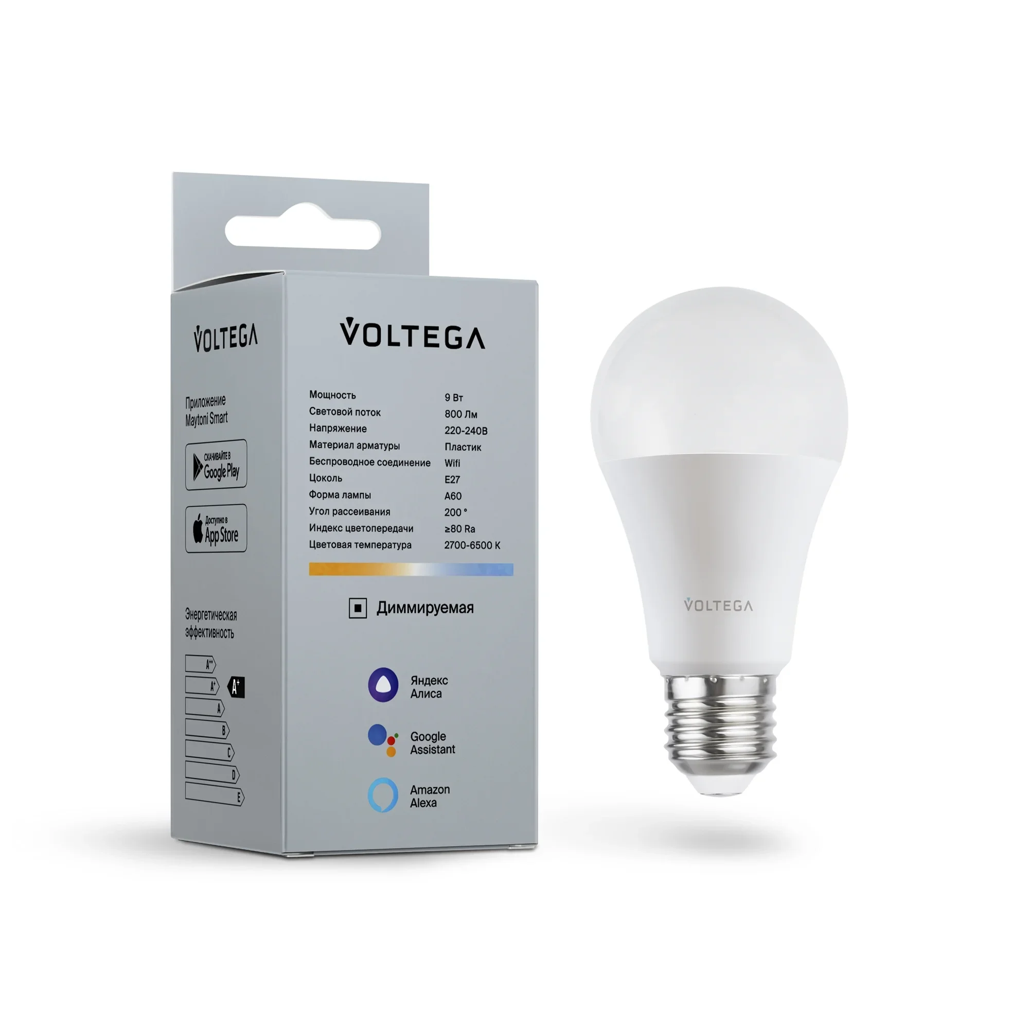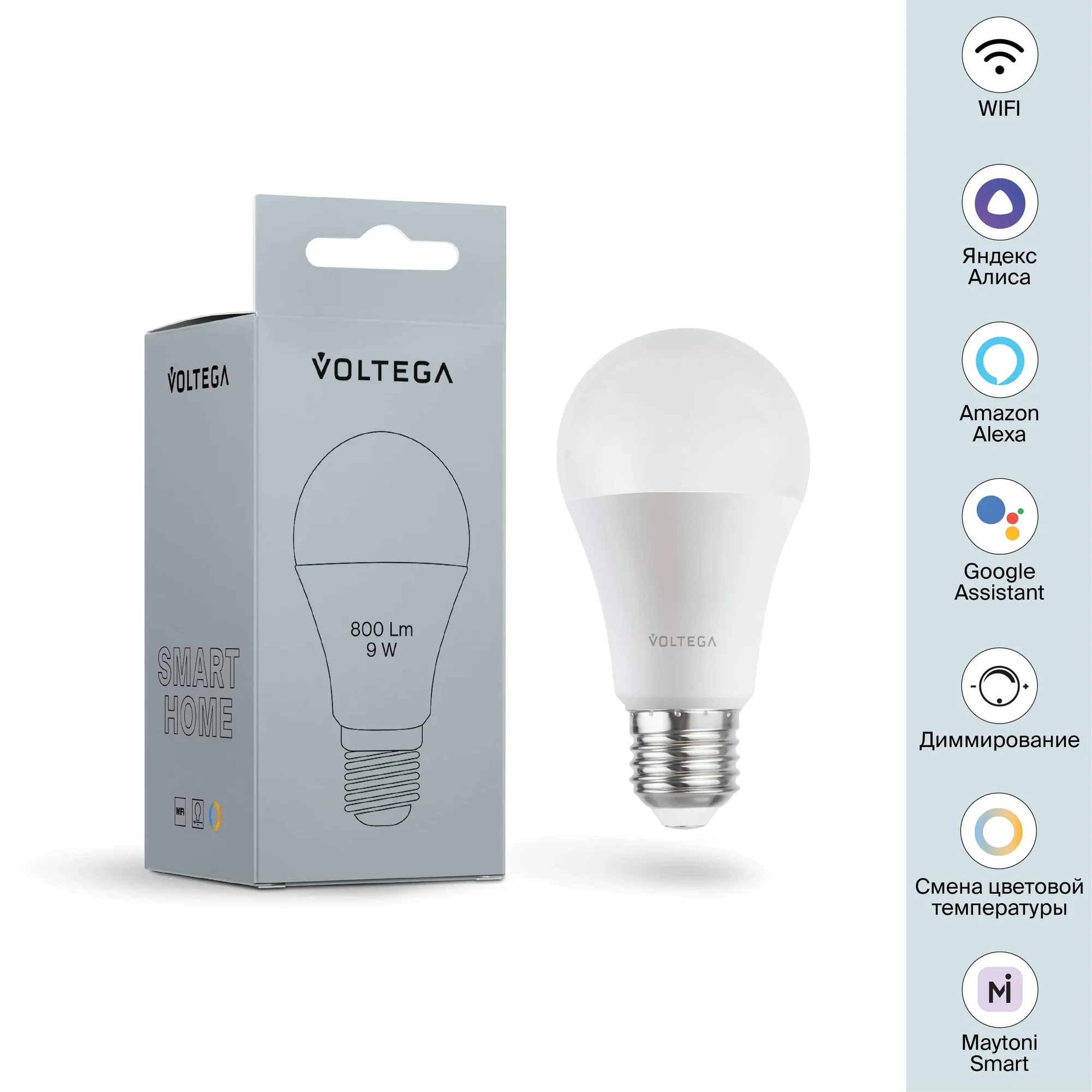 Светодиодная лампа Wi-Fi A60 E27 9W 2700K-6500K MIX DIM