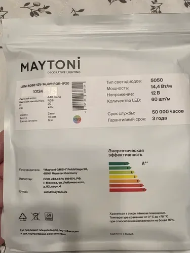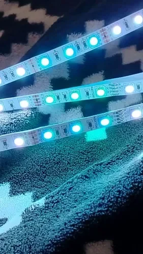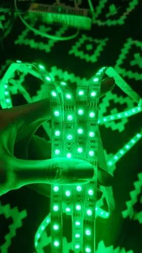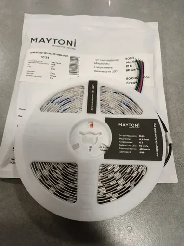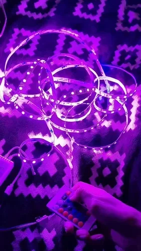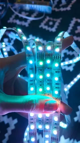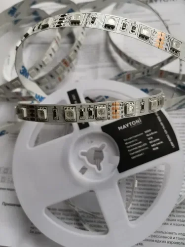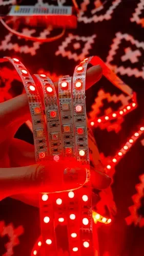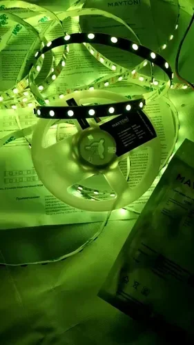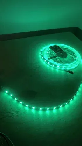 - RGB-лента с возможностью настройки цвета и эффектов через пульт или приложение, идеальна для создания динамичного освещения.