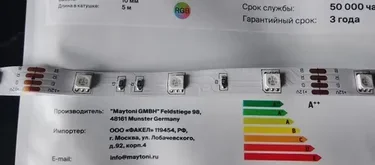- Лента с трехкристальными светодиодами 5050, обеспечивающими высокую яркость и равномерное свечение.