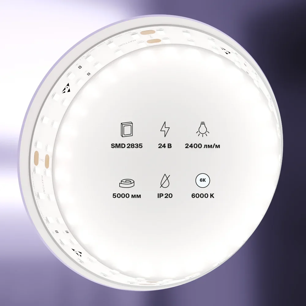 - Лента с инновационными светодиодами SMD 2835, обеспечивающими повышенную яркость и световой поток.