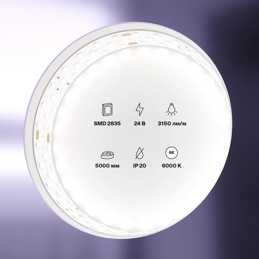 - Лента с инновационными светодиодами SMD 2835, обеспечивающими повышенную яркость и световой поток.