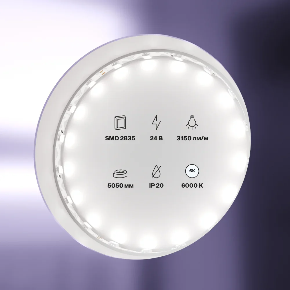 - Лента с трехкристальными светодиодами 5050, обеспечивающими высокую яркость и равномерное свечение.