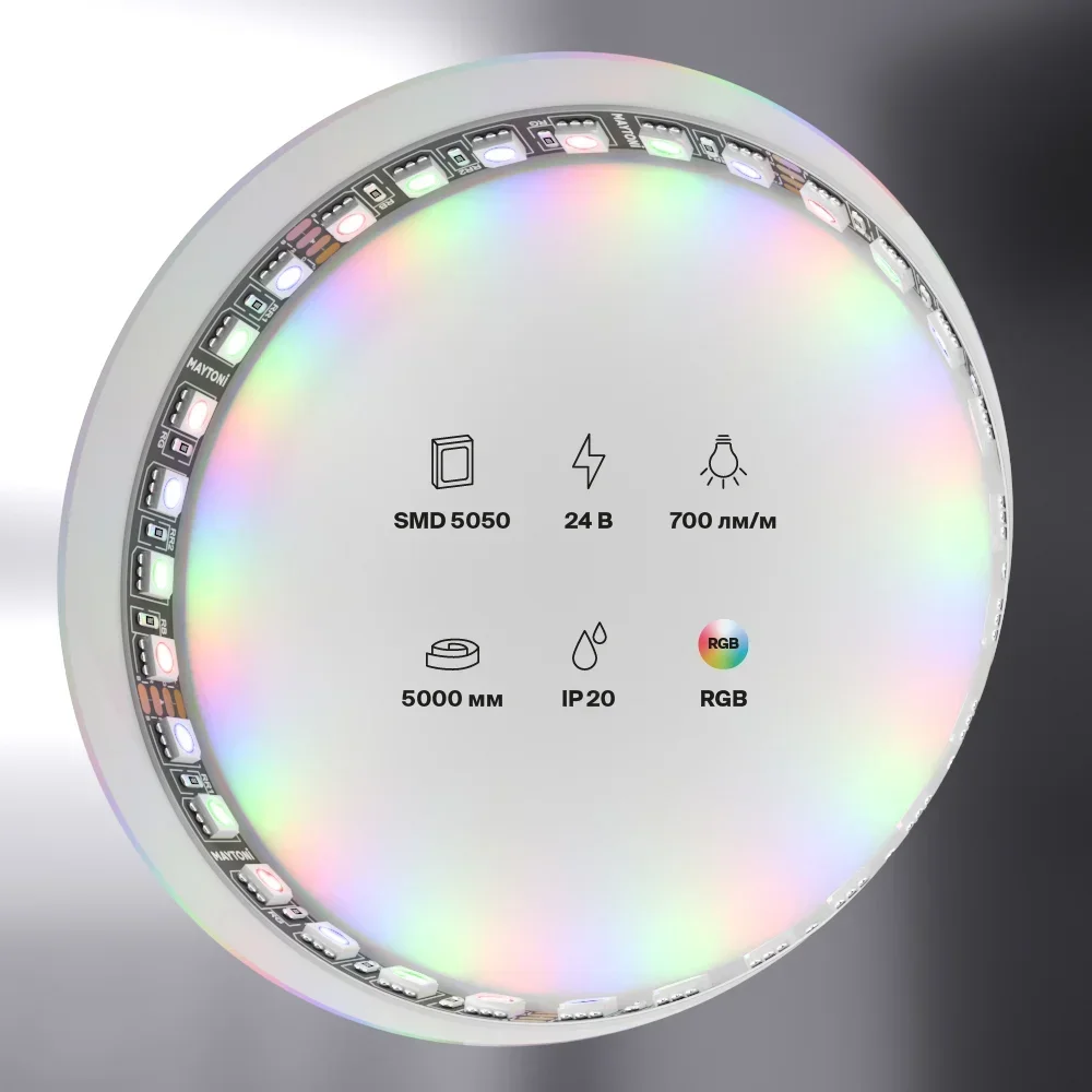 - Лента с трехкристальными светодиодами 5050, обеспечивающими высокую яркость и равномерное свечение.