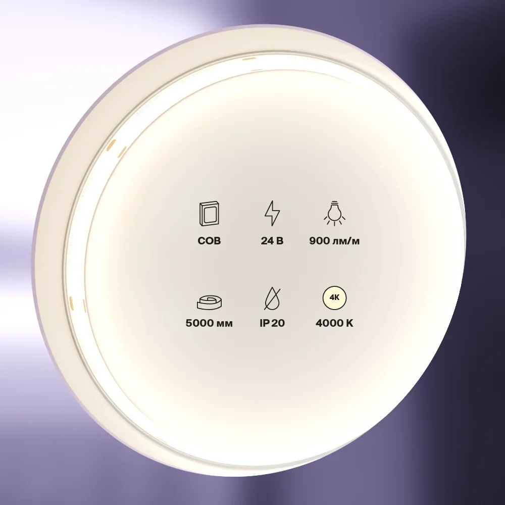 Светодиодная лента 24В COB 12Вт/м 4000K 5м IP20, 10183