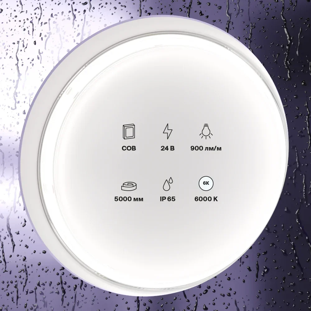 Светодиодная лента 24В COB 12Вт/м 6000K 5м IP65, 10187