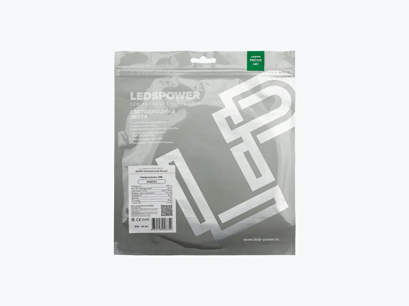 Светодиодная лента 2835 112/м (10Вт/м) 24В нейтральная, серия ПРО125 008752