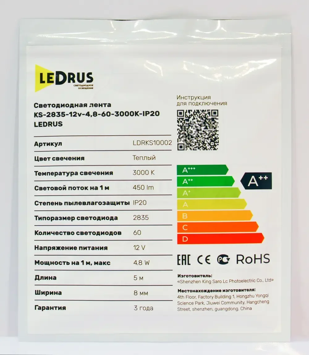 Особенность светодиодная лента ldrks10002 ledrus