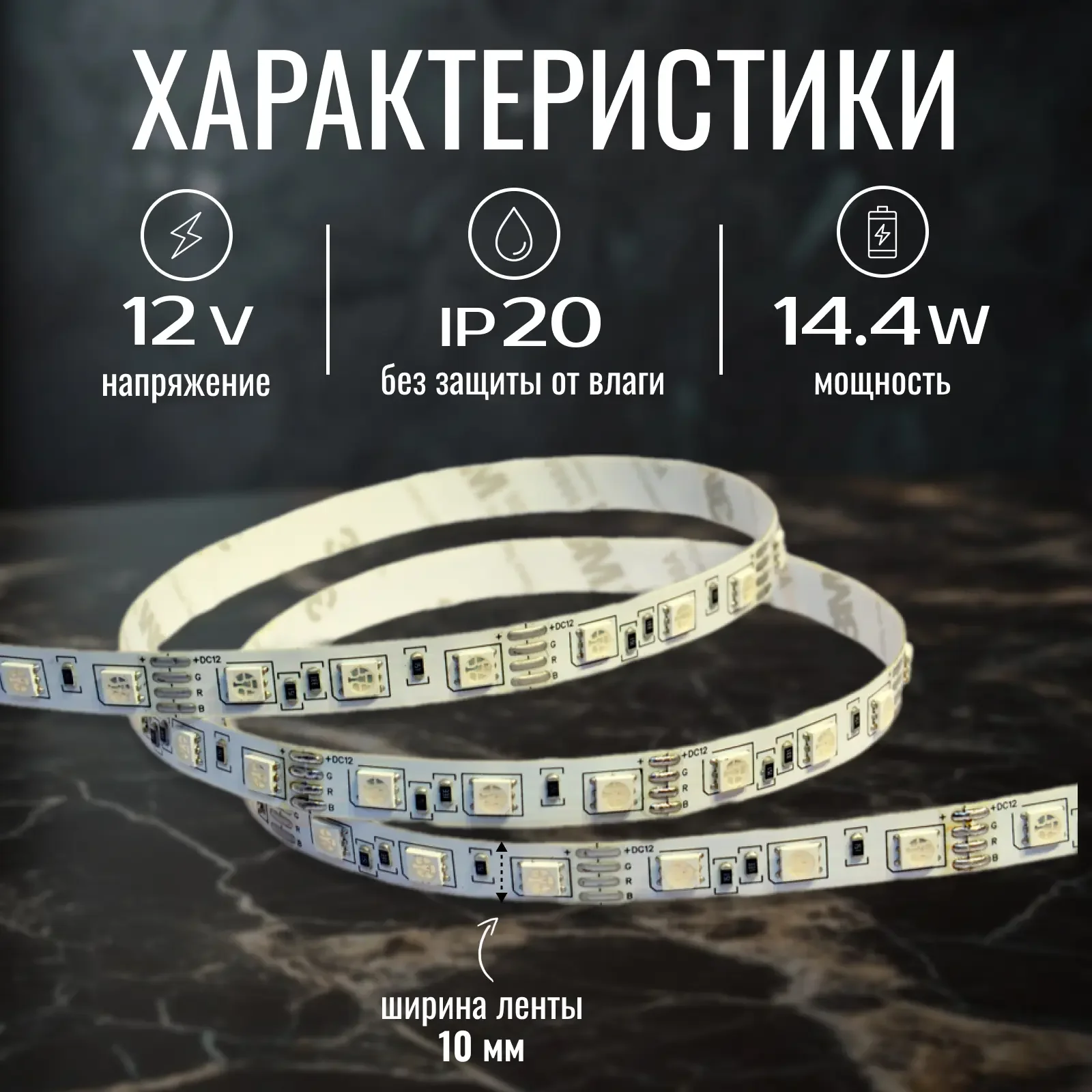 - Лента с трехкристальными светодиодами 5050, обеспечивающими высокую яркость и равномерное свечение.